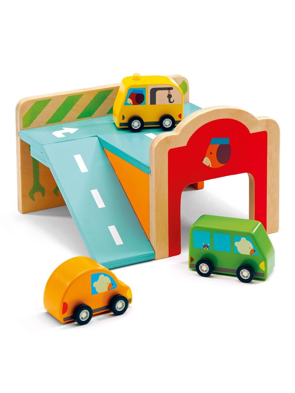DURABLE MATERIALS: Made from premium quality wood and materials, ensuring worry-free play that meets rigorous safety standards. The set include 1 wooden garage and 3 cars (wood and plastic).