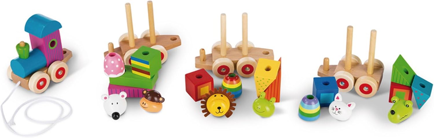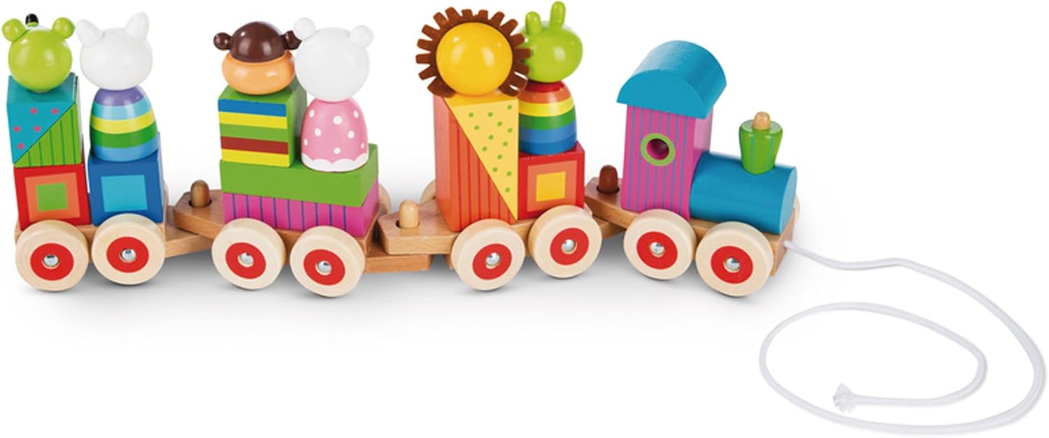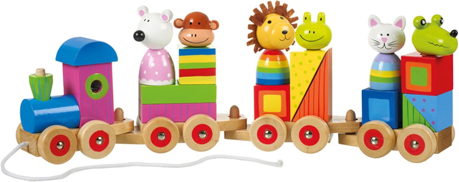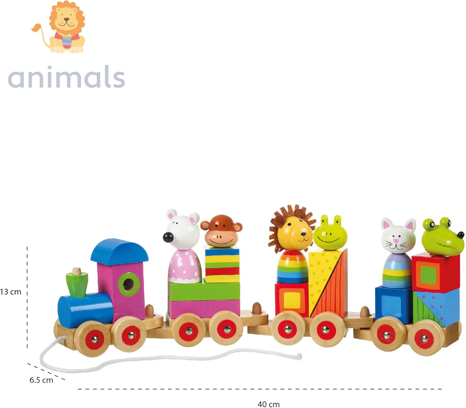 Develop Key Motor Skills: Make friends with this beautifully hand crafted animal pull along puzzle train. Featuring 3 carriages and removable wooden blocks. This cute animal toy will follow you around as you pull it along. Perfect to encourage those first steps!