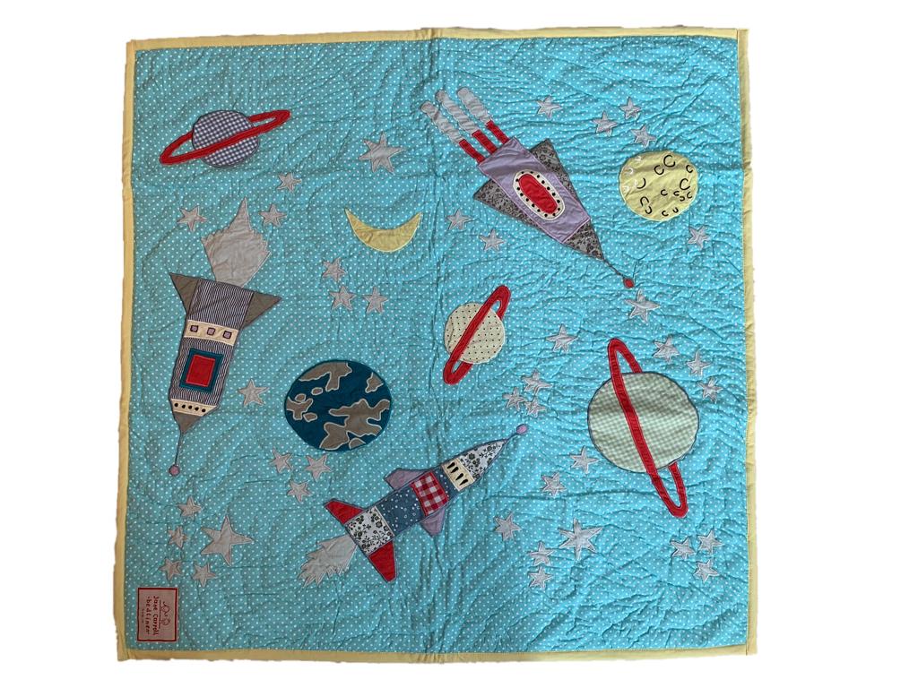 This quilt makes the perfect gift for any child! 100% cotton, machine washable. Can be personalised with child's name and date of birth, embroidered in any colour. Size: 75 x 75 cm