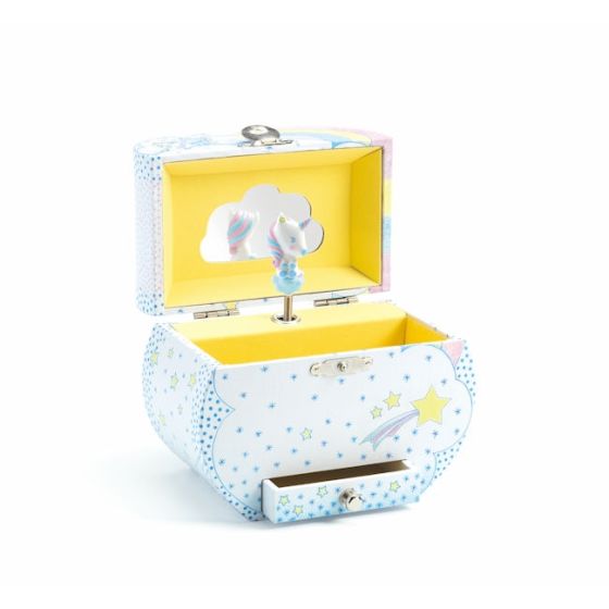 This gorgeous Unicorn's Dream musical jewellery box by Djeco will have you up in the clouds! As the teeny tiny unicorn inside twirls along with the music you can tidy away rings, bracelets and necklaces safely inside the box, with the lovely yellow velvet lining to keep your jewellery safe!
